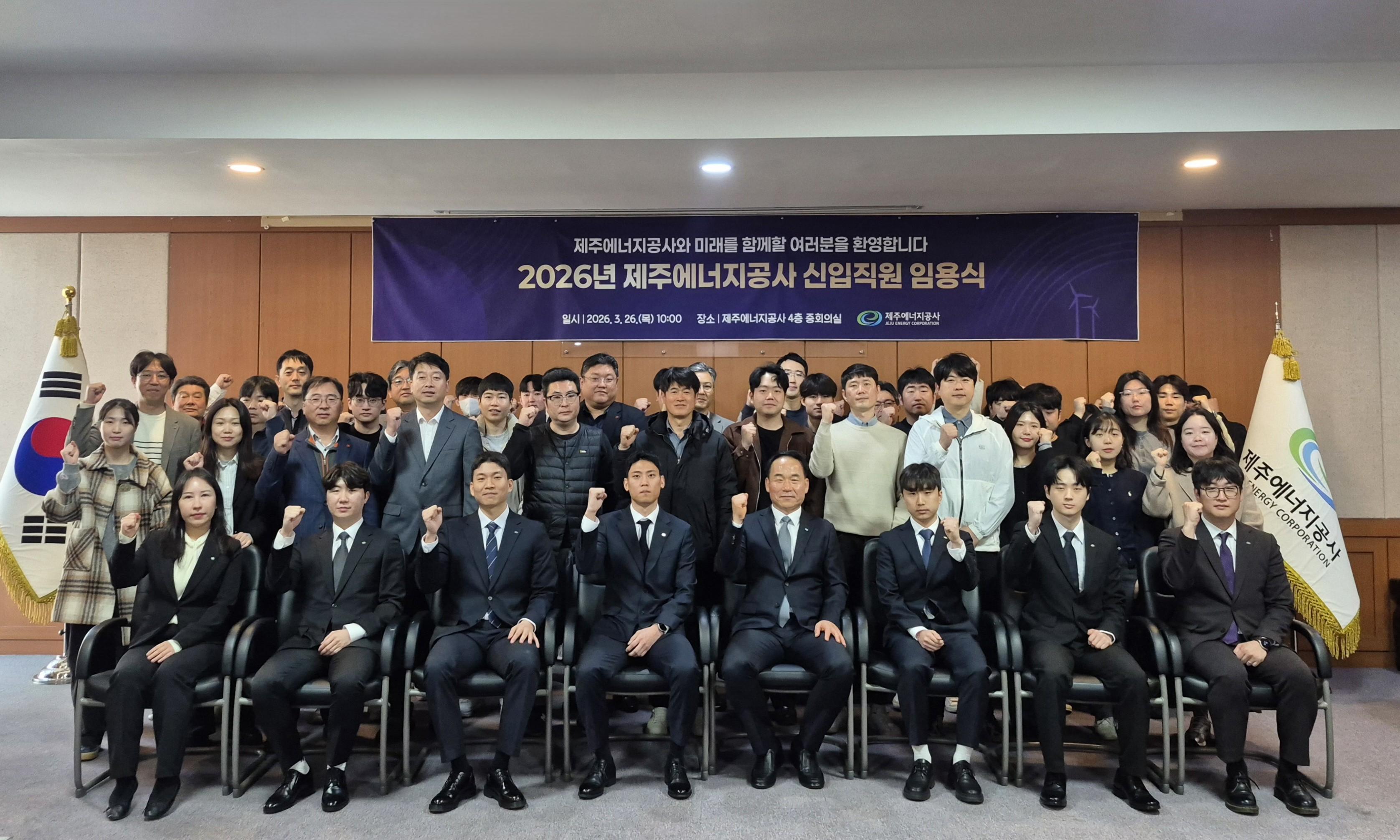 ▢ Á¦ÁÖ¿¡³ÊÁö°ø»ç(»çÀå ÃÖ¸íµ¿)Àº 3¿ù 26ÀÏ º»»ç¿¡¼ ‘2026³â Á¦1ȸ Á¤±ÔÁ÷ ÀÓ¿ë½Ä’À» °³ÃÖÇÏ¿©, °ø°³Ã¤¿ëÀ» ÅëÇØ ¼±¹ßµÈ ½Å±Ô Á÷¿øµéÀÇ °ø½ÄÀûÀÎ Ãâ¹ßÀ» ¾Ë·È´Ù.