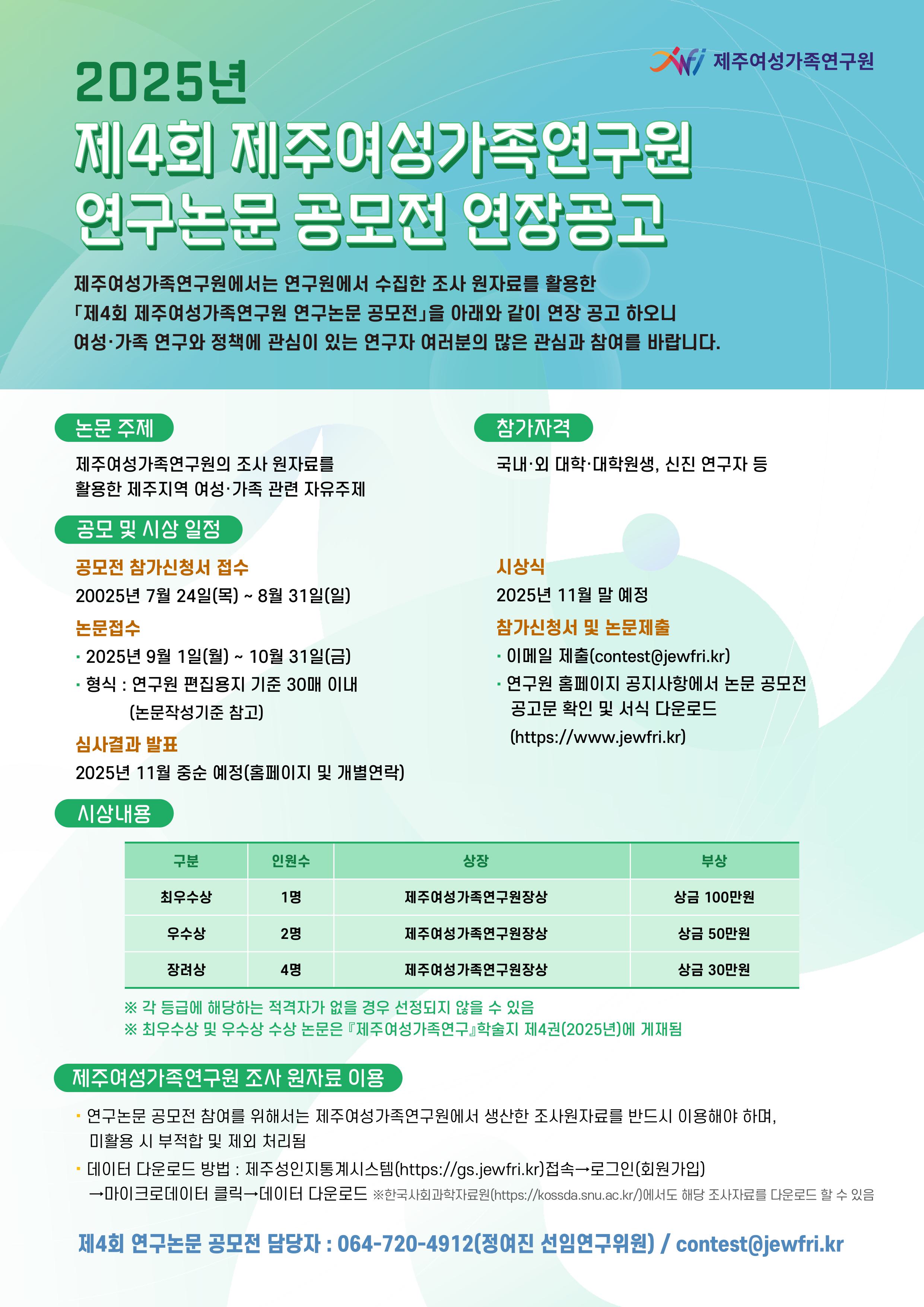 [Á¦ÁÖ¿©¼º°¡Á·¿¬±¸¿ø] Á¦4ȸ Á¦ÁÖ¿©¼º°¡Á·¿¬±¸¿ø ¿¬±¸³í¹® °ø¸ðÀü ¾È³»