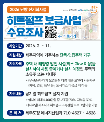 Á¦ÁÖÆ¯º°ÀÚÄ¡µµÃ»¿¡¼ ȼ®¿¬·á(LPG, µîÀ¯ µî) º¸ÀÏ·¯ ³¹æ¿¡¼ °íÈ¿À² Àü±âÈ÷Æ®ÆßÇÁ ³¹æÀ¸·Î ±³Ã¼¸¦ ÅëÇØ ´ë±â¿À¿°¹°Áú Àú°¨ ¹× ¿Â½Ç°¡½º °¨ÃàÀ» µµ¸ðÇϰíÀÚ ¡¸2026³â ³¹æ Àü±âÈ »ç¾÷(È÷Æ®ÆßÇÁ º¸±Þ»ç¾÷)¡¹ ÃßÁøÇÏ¿À´Ï ¸¹Àº °ü½É°ú Âü¿© ºÎʵ右´Ï´Ù.